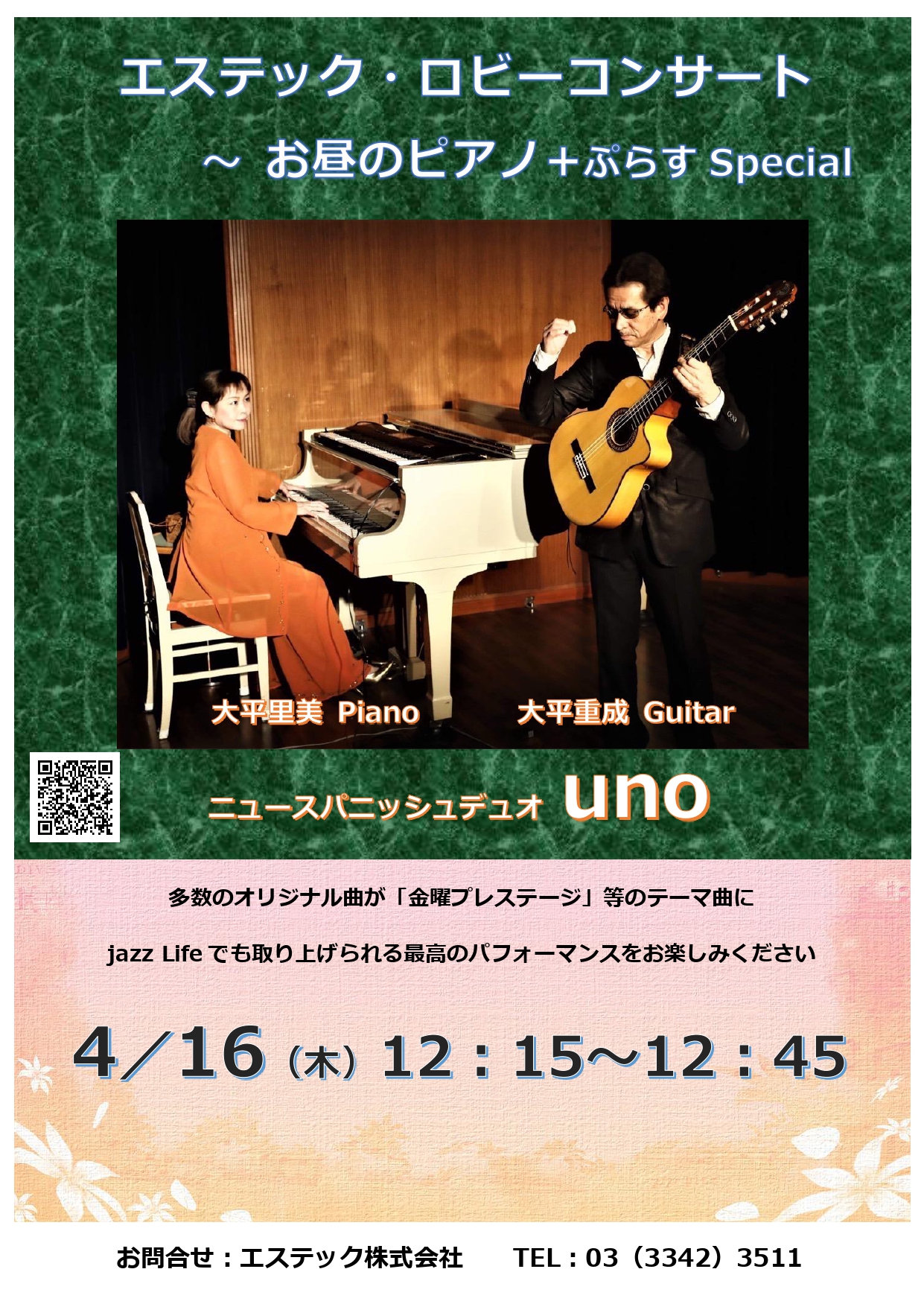 【開催日:4月16日】エステック・ロビーコンサートのお知らせ